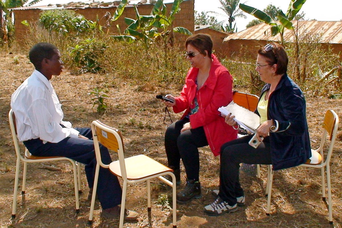 As Profas. Dras. Márcia Oliveira e Lurdes Jorge coletando dados de fala do Português do Libolo na Comuna da Cabuta, em 2013