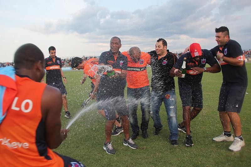 No final do jogo é hora de arrumar os equipamentos e exibir um sorriso de satisfação para as câmaras.