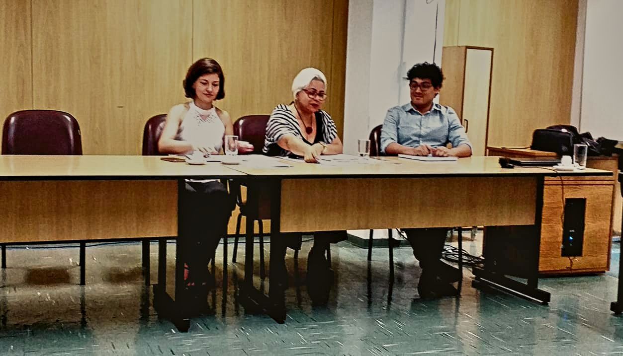 A apresentação da tese de doutoramento, com as Professoras Doutoras Márcia de Oliveira e Flaviane Fernandes Svartman.