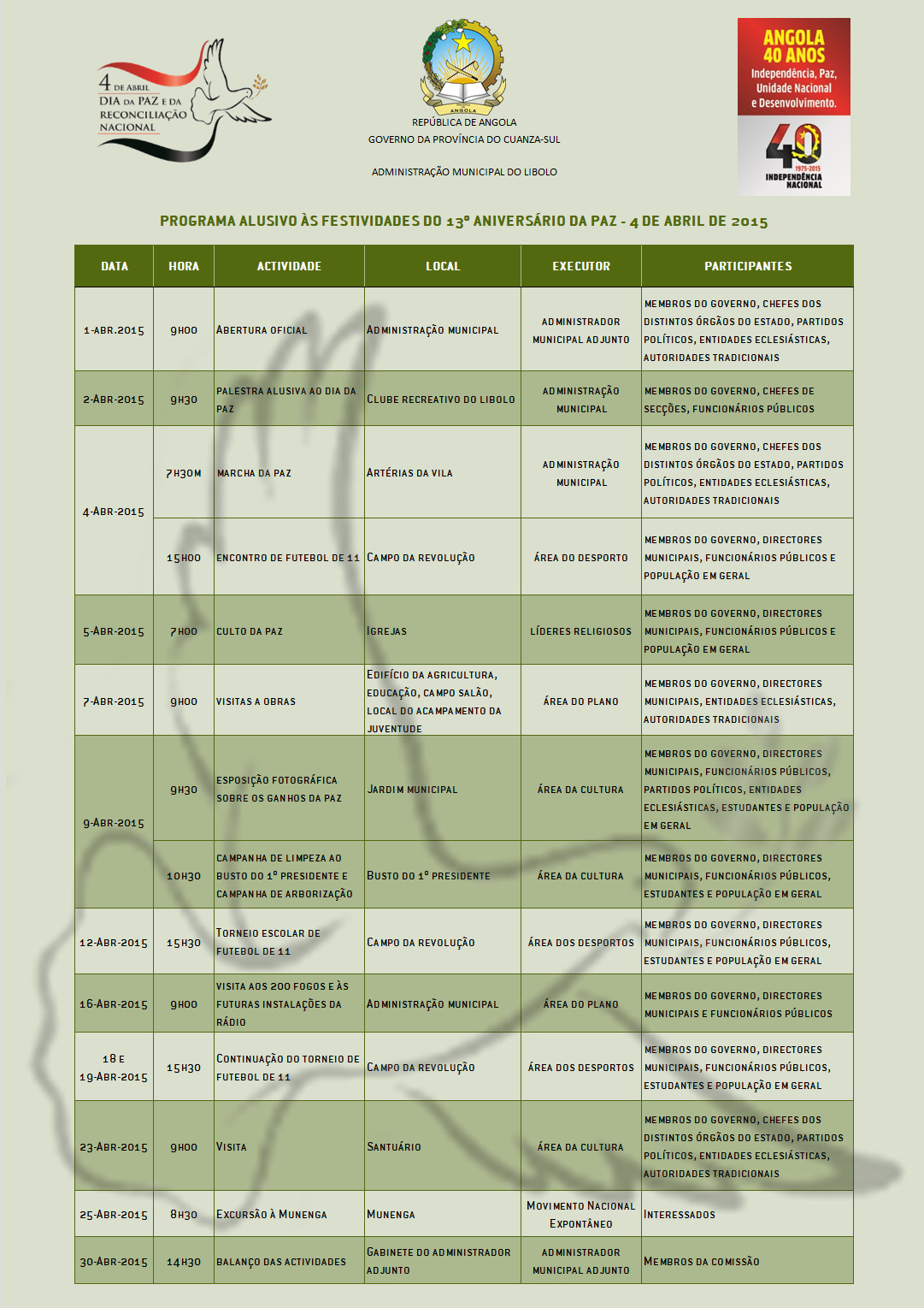 A Marcha da Paz terminou junto da Fortaleza de Calulo, de onde o Senhor Administrador Municipal proferiu algumas palavras perante algumas centenas de calulenses que se associaram ao evento.